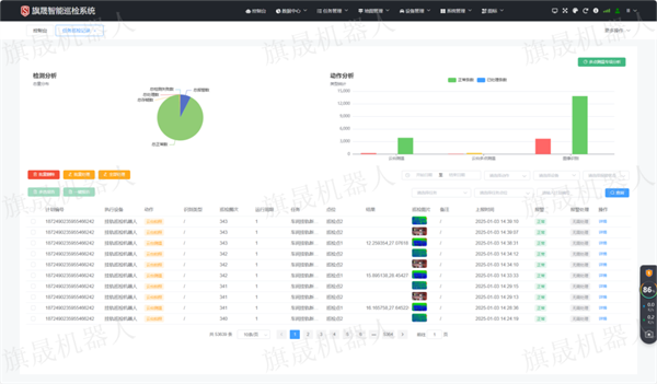 7、報表功能:機器人回傳巡檢信息,管理軟件按不同字段生成報表,以多種形式分析,助于判斷設備運行和預測性能。