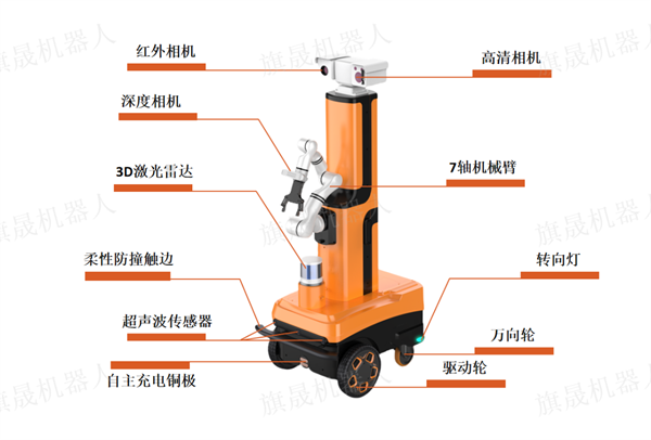 旗晟復合型操作巡檢機器人集巡檢、操作、導航于一體,專為工業(yè)環(huán)境設計。其核心配置包括: