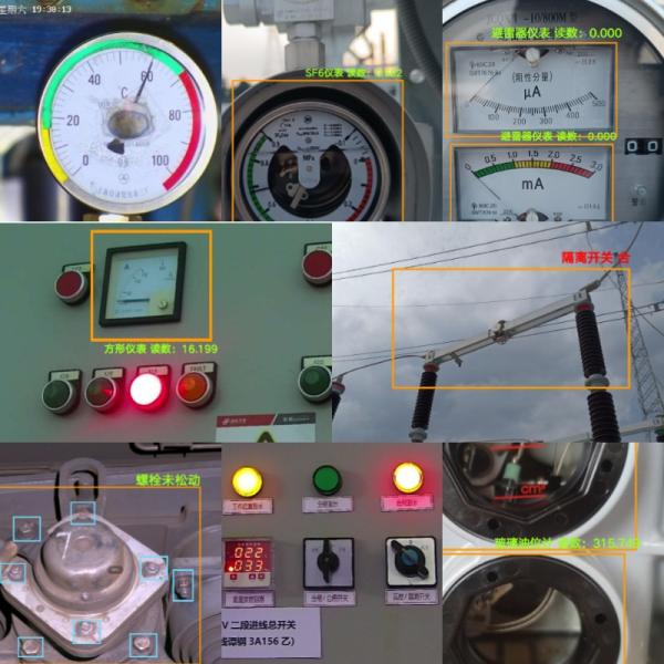 旗晟智能檢測算法基于行業大數據庫積累以及自研AI深度學習算法模型,可以對單指針儀表讀數、SF6儀表讀數、避雷器儀表讀數、斷路器儲能指示分合狀態、方形儀表讀數、分合計分狀態監測、隔離開關分合狀態監測、紅外測溫箱讀數、流變油位監測、螺栓松動狀態監測、旋鈕開關狀態監測、ABB繼電器讀數、SEL保護繼電器讀數、雙指針儀表讀數、液晶儀表讀數、玻璃油位計讀數、油位計讀數、指示燈狀態監測等儀器儀表識別!