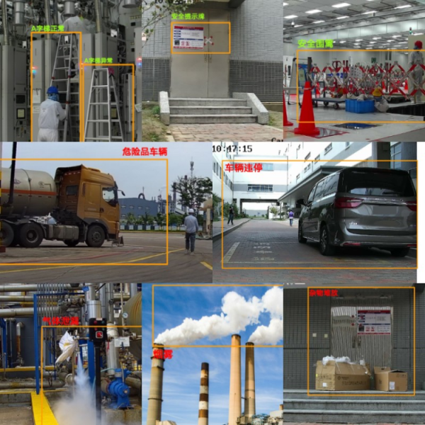 旗晟智能檢測算法基于行業大數據庫積累以及自研AI深度學習算法模型,可以對A字梯異常監測、安全門開合監測、安全提示牌監測、安全圍籬監測、危險品車輛識別、叉車/貨車/清掃車識別、車輛違停監測、窗戶開合狀態、火焰監測、漏液監測、氣體泄漏檢測、煙霧檢測、雜物堆放監測、渣土掉落監測、違規騎自行車、皮帶機異常監測